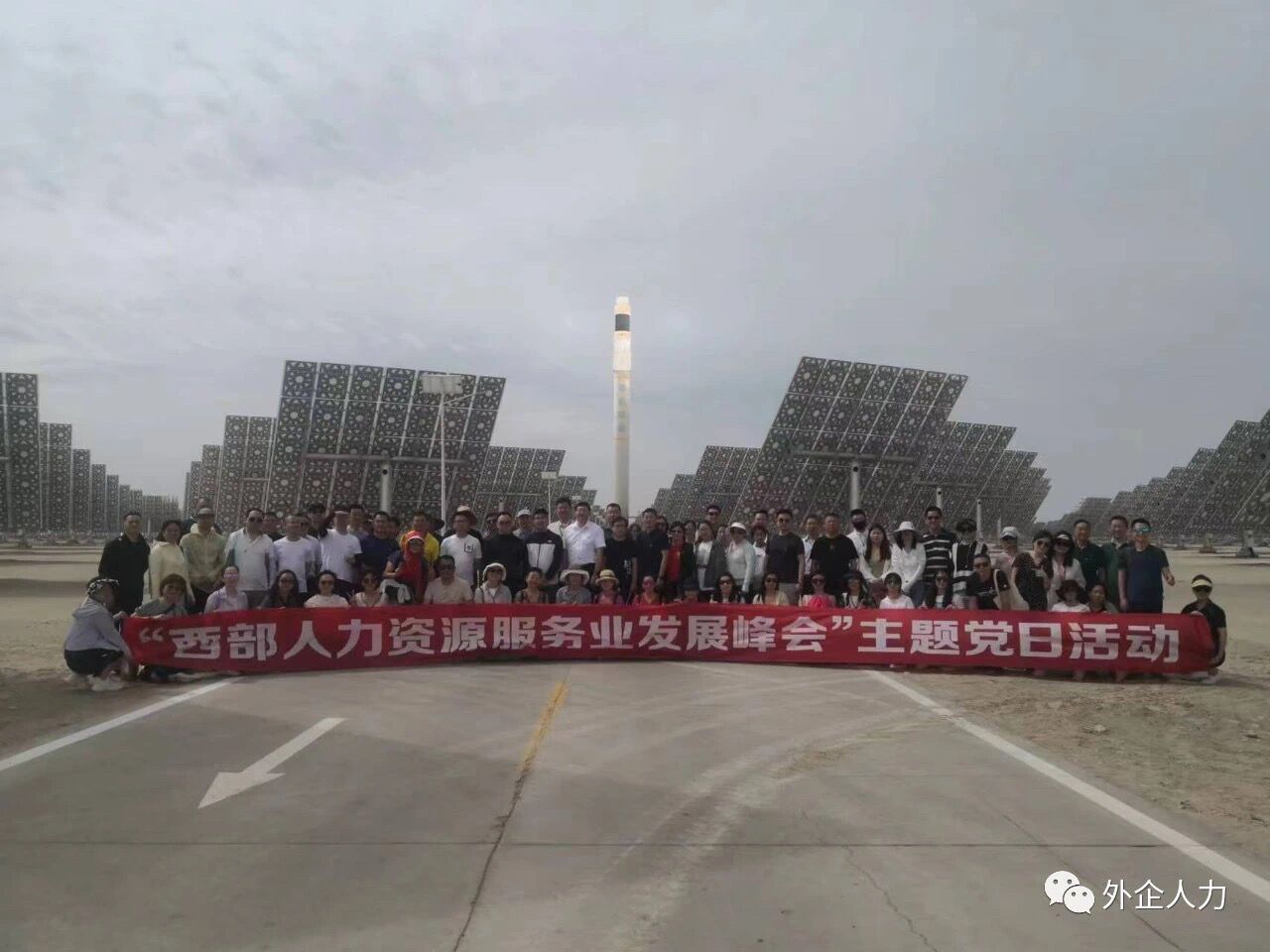 會后恰逢建黨102周年,與會代表共同參加了“西部人力資源服務業(yè)發(fā)展峰會”主題黨日活動,參觀了位于敦煌光電產(chǎn)業(yè)園首航節(jié)能敦煌市100兆瓦熔鹽塔式光熱發(fā)電站,該發(fā)電站是國家首批光熱發(fā)電示范電站之一,于2018年12月底并網(wǎng)發(fā)電。